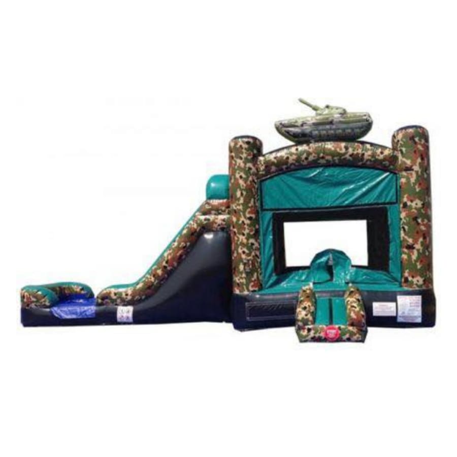 FEATURES: bounce house,climb wall,basketball hoop, slide, and padded pool!